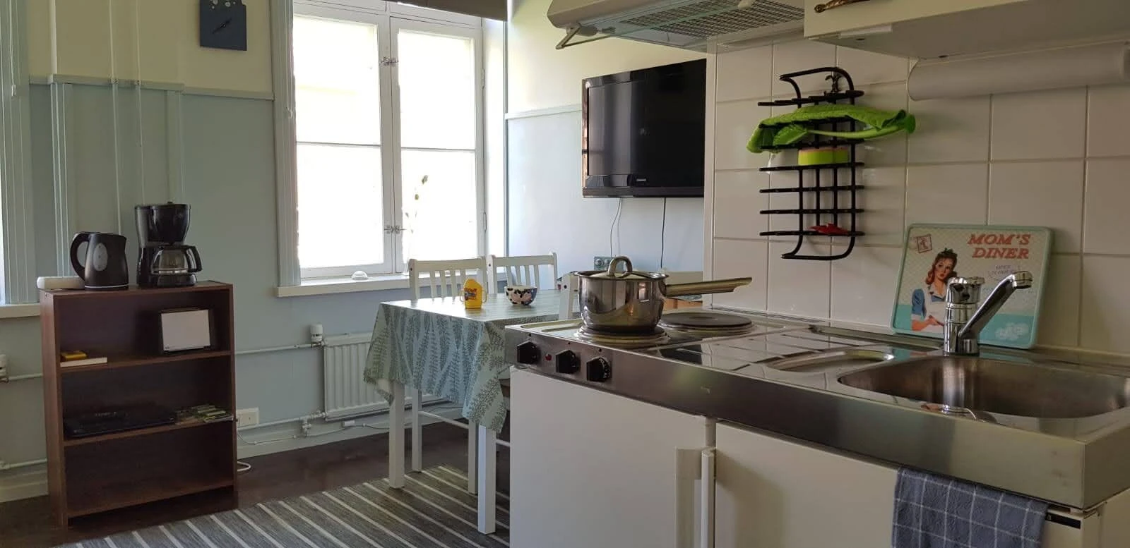 Pieni iltapala on piirakkapala, jonka voitte itse huoneessa lämmittää. Voitte valita etukäteen kinkkupiirakan tai juusto-kasvispiirakan. Perhehuoneissa on oma suihku/wc, kotivarustus ja keittiövälineet ruoanlaittoon. Lisäksi talo tarjoaa kahvia ja teetä. Lämmitystolpallinen parkkipaikka on pihalla ilmainen. Tarjoushinta on max. 4 henkilölle, muut henkilöt lisähintaan.