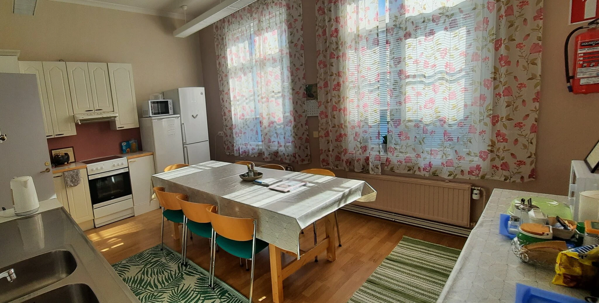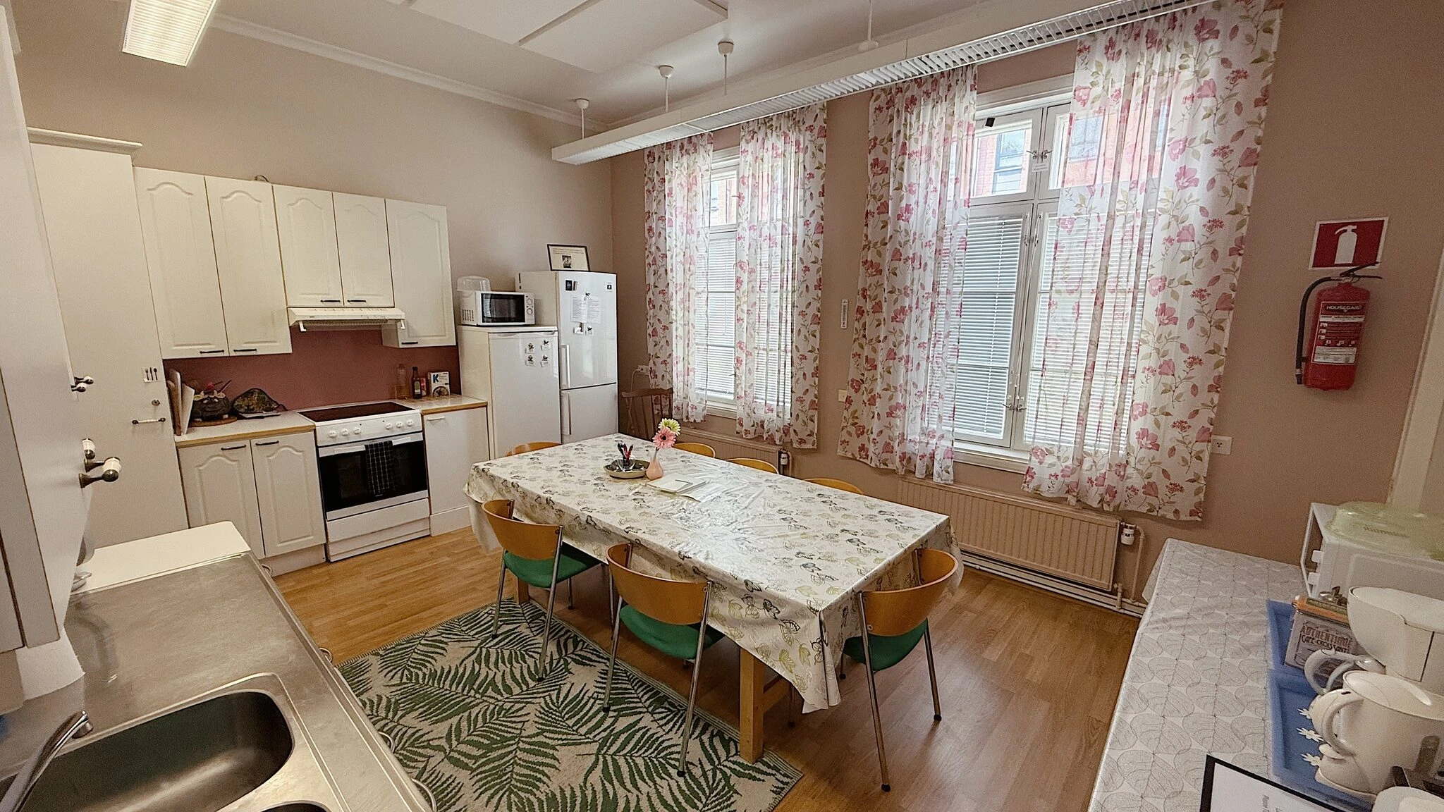 Yhteisessä keittiössä on runsas varustus, astiat ja ruoanvalmistusvälineet, riittävästi kylmätilaa, mikrot, keittimet, hellauuni jne. Marja tarjoaa vierailleen kahvia ja teetä, valitse vaan mieleisesi muki. Suihkutiloja on hostellissa kaksi, molemmissa 2 suihkupaikkaa ja löytyy myös hiustenkuivaajat ja pesuaineita. Aamiainen on ajankohdasta riippuen joko buffet-tarjoiluna hotellin puolella tai sitten tuomme hostellin yhteiskeittiön jääkaappiin aamiaispaketin. Aamiaisen hinta 11,50 €/hlö/vrk, lapset 3-12 v. 5,50 €/hlö/vrk.