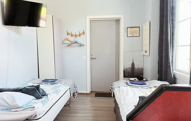 Kun olet yksin majoittumassa, ei tarvitse maksaa ison huoneen hintaa. Tästä isompikin hostellihuone sinulle kokonaan omaksi. Hostelli sijaitsee huoneistohotellin vieressä.